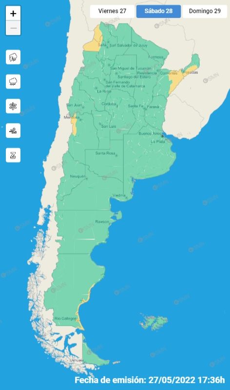 "Parcialmente nublado con descenso de la temperatura, vientos leves del noreste", informa por su parte la Dirección de Agricultura y Contingencias Climáticas (DACC).