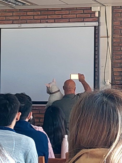 Una usuaria compartió la foto de la foto y muestra a Nala en la clase, escribiendo: "Fue una alumna más !! Jaja".