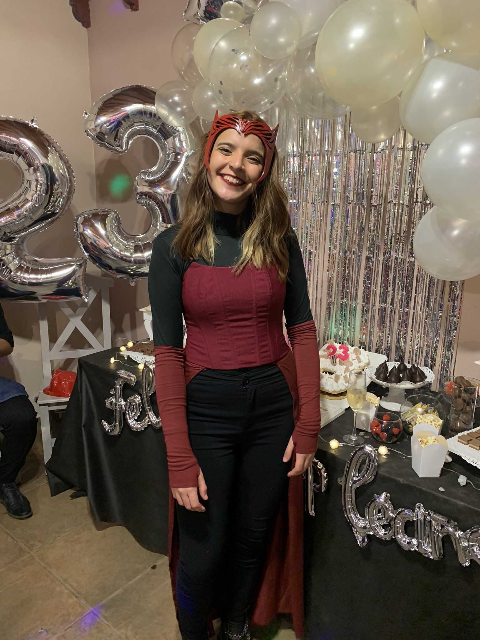 Para cerrar el hilo, Blandina posteó una foto de su disfraz como Bruja escarlata. El personaje ficticio de los cómics publicados por Marvel Comics cobró relevancia con la serie Wanda Vision, estrenada el año pasado por Disney Plus e interpretada por Elizabeth Olsen.