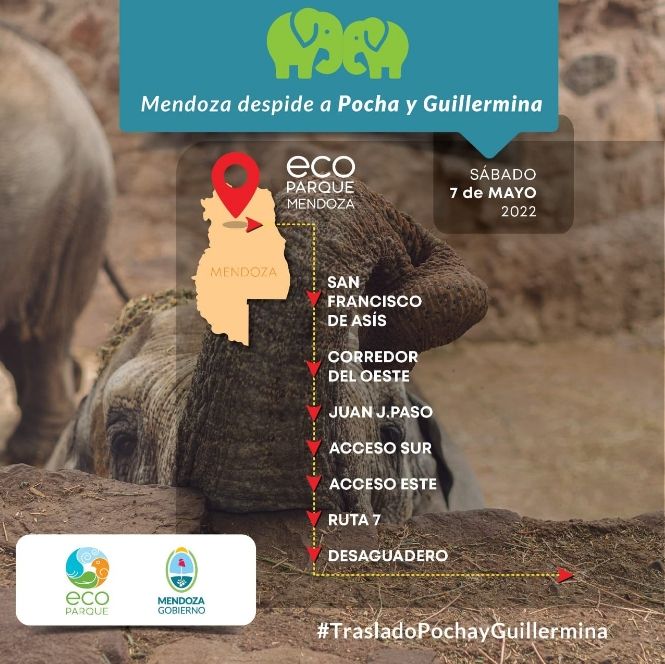 El secretario de Ambiente de Mendoza, indicó desde el Ecoparque: "Pocha y Guillermina dejan el Ecoparque para vivir una mejor vida en @GlobalElephants. Un espacio natural, amplio y con otros elefantes. Agradecemos a toda la sociedad y organismos que nos acompañaron durante este proceso para hacer posible este momento".