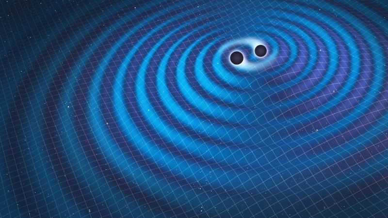Las ondas gravitacionales viajan por el espacio-tiempo como las ondas en un lago.