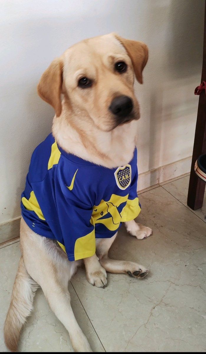 Jesús Salazar, otro Xeneize de la red del pajarito, compartió una tierna foto de su perro muy parecido a Roco, con una camiseta azul y amarilla.