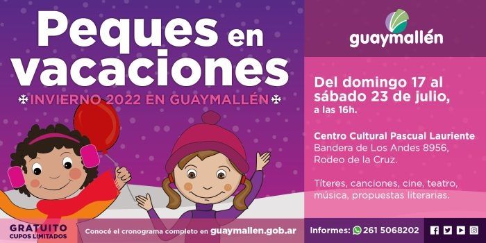 La agenda que propone la Municipalidad de Guaymallén posee numerosos eventos que incluyen teatro, malabares, circo, títeres y música, todo a cargo de elencos artísticos locales. A estas propuestas se suman juegos guiados por profesores de la Dirección de Deportes, demostraciones de bomberos voluntarios, orientaciones formativas y prácticas de las direcciones de Salud, Ambiente y Seguridad Vial.