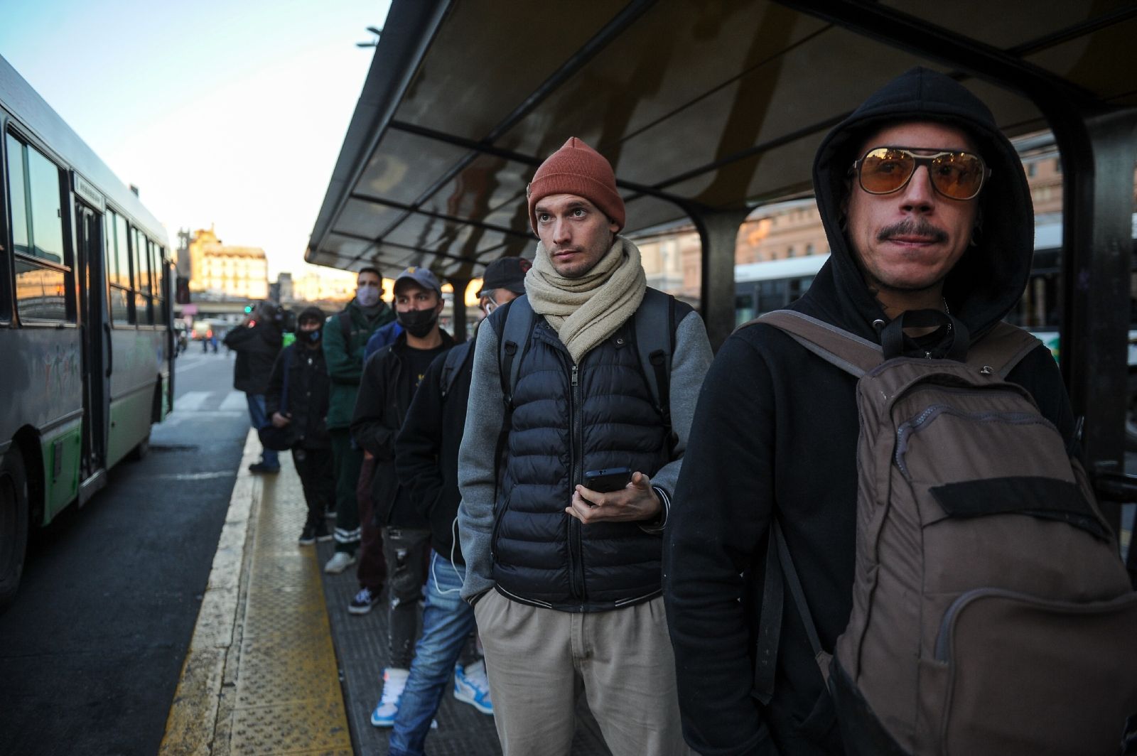 Esta mañana se volvieron a registrar largas filas de pasajeros aguardando el arribo de los colectivos en puntos neurálgicos de la ciudad como en las inmediaciones de las estaciones ferroviarias de Once, Chacarita y Constitución.