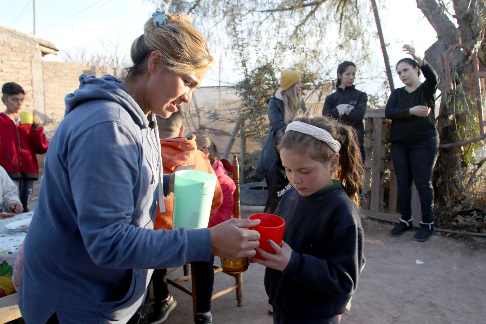 Esté soleado, haga calor o frío, inclusive si llueve, Cecilia abre las puertas de su casa para recibir a todos los niños y sus mamás. No hay excusas para encender la hornalla, hervir el agua en una enorme cacerola, hacer el mate cocido y esperar que una de las otras mamás llegue con sopaipillas, rosquitas, facturas o pastafrola para comenzar a repartir. Aunque, lamentablemente, algunas semanas no todo sale como se planea y no se puede convocar a los pequeños, las donaciones son pocas y el bolsillo está ajustado para bancar todo el gasto.