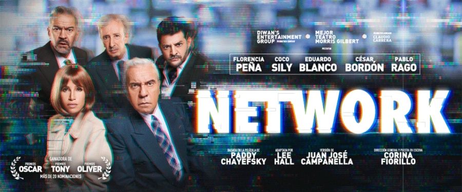 La versión teatral estrenada en el Teatro Coliseo se encuentra interpretada por Coco Sily (en el papel de Howard Beale), Florencia Peña, Eduardo Blanco, César Bordón y Pablo Rago acompañados por más de treinta personas en escena. Su final (tranquilos, no voy a spoilearlo) sólo continúa exacerbando la condición humana de lo que significa la máquina trituradora de personas de un medio de comunicación. El montaje teatral de esta obra se estrenó primero en el Royal National Theatre de Londres en 2017 y luego pasó a Broadway, allí liderado por Bryan Cranston, conocido protagonista de Breaking Bad. La versión vernácula de Network tiene producción de Ariel Dewan con dirección de Corina Fiorillo en la versión de Juan José Campanella quien siempre fue un entusiasta personal de la obra (la conoce y puede repetir diálogos completos).