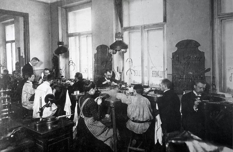 Taller Fabergé en San Petersburgo en 1920. La empresa se hizo famosa por la relación del joyero con la corona rusa.