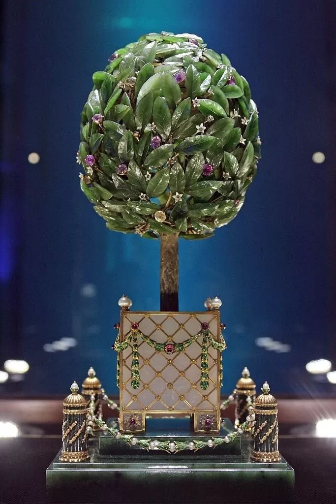 "Árbol de laurel", uno de los huevos creados por Fabergé, que se encuentra en el Museo de San Petesburgo, Rusia.
