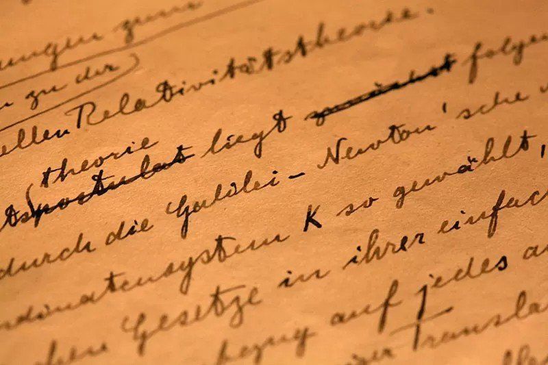 Un detalle de la Teoría de la Relatividad General de Albert Einstein, quien donó el manuscrito original a la Universidad Hebrea de Jerusalén.