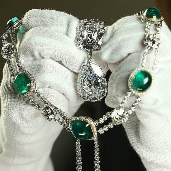 Se cree que es el diamante rosa más grande extraído desde el Daria-i-Noor de 185 quilates, que se extrajo de una piedra más grande y ahora se encuentra entre las joyas de la corona iraní.