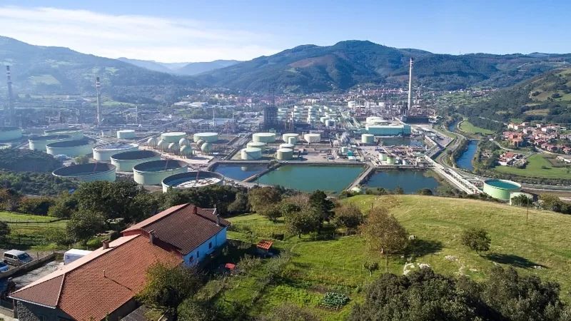 Repsol señaló que obtendrá CO2 de la planta de producción de hidrógeno en su refinería de Petronor, en la foto. La empresa comenzó a construir en mayo en el puerto de Bilbao "una de las plantas de combustibles sintéticos más grandes del mundo".