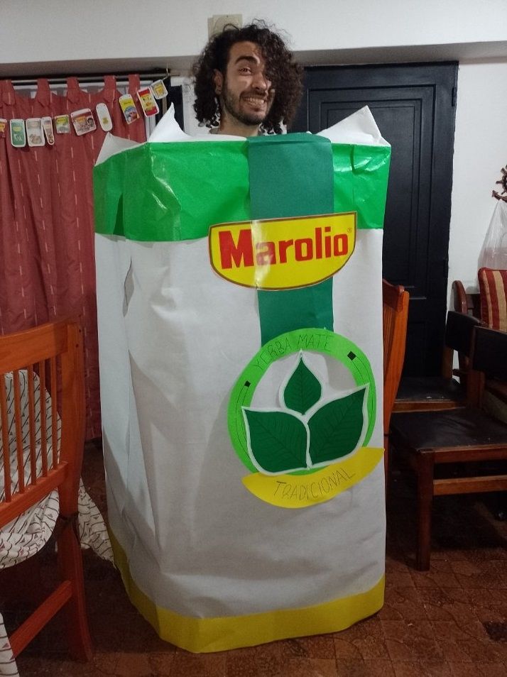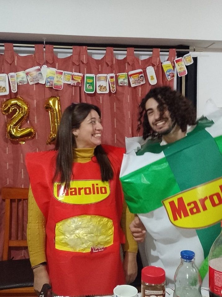 El muchacho cumplió 21 años y se armó un traje de yerba mate Marolio. A su vez, la mamá del cumpleañero se disfrazó de los fideos moñito Marolio y colgaron una guirnalda con los packs de los distintos productos de la marca.