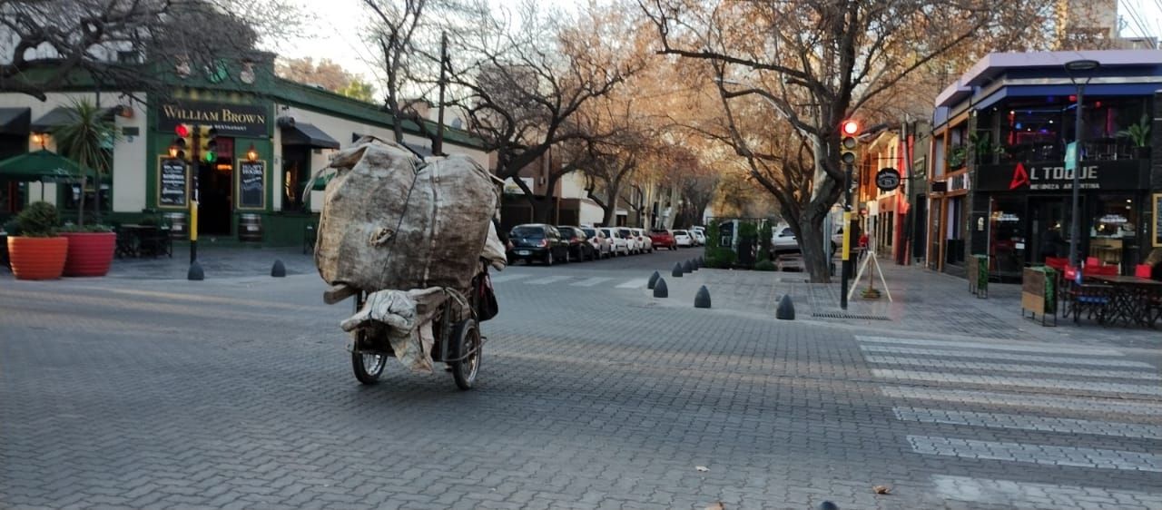 "No cuesta, estoy acostumbrado", dice. Alexis camina, empuja. Hurga canastos y busca residuos que tienen valor en la economía informal. Es, desde hace tres años, uno más de los miles de mendocinos que recorren las ciudades para recolectar y vender material, un trabajo que crece de manera enorme. "Hay mucha más gente que antes. Acá algo de plata sacás, para el día y algo más. A mí me va bien", explica el joven.