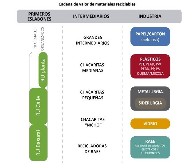 La basura tiene una cadena de valor. Los recuperadores urbanos o cartoneros son la primera parte. Ellos recolectan y luego le venden a intermediarios, a acopiadores primarios de ese material. El paso siguiente lo componen los acopiadores más grandes (que trabajan con empresas y con la industria que recicla), que tienen un poder de negociación y de imposición de precios mayor. Los municipios aggiornaron sus estrategias a esa realidad informal y construyeron comunidades de recuperadores. En una economía que no genera empleo de calidad, buscaron ser resilientes y generar mejores condiciones en ese sector informal.
