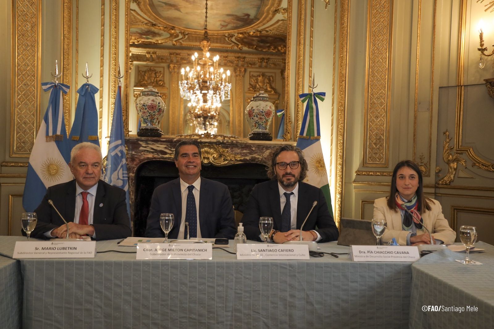 En el acto también estuvieron presentes el ministro de Relaciones Exteriores, Comercio Internacional y Culto de la Nación; Santiago Cafiero -quien sorprendió a todos con su presencia ya que no era esperado-, el embajador Carlos Cherniak representante permanente de la República Argentina ante la FAO, el Fondo Internacional de Desarrollo Agrícola (FIDA) y el Programa Mundial de Alimentos (PMA) de manera virtual; la vicegobernadora chaqueña Analía Rach Quiroga, también de forma virtual, y de manera presencial la ministra de Desarrollo Social del Chaco, Pía Chiacchio Cavana.