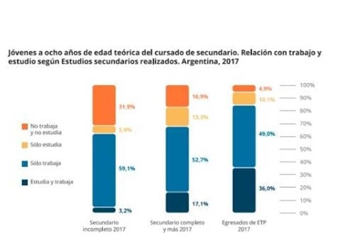 En este sentido, el informe del Sistema de Seguimiento de Estudiantes y Graduados de la Educación Técnico Profesional (SEGETP) del año 2017, ratifica la estrecha relación entre escuela técnica e inserción laboral: entre los alumnos egresados de Escuelas Técnicas, un 36% estudia y trabaja, un 49% sólo trabaja y apenas un 4,9% no estudia ni trabaja. En cambio, si miramos a los que terminaron el secundario común, nos encontramos con que solo un 17% estudia y trabaja, un 52% sólo trabaja y, lo que es más alarmante, un 16,9% no estudia ni trabaja.