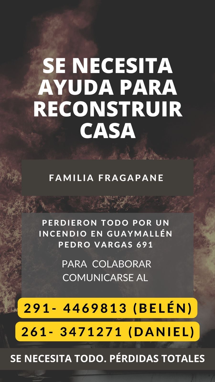 Para colaborar con la familia, pueden comunicarse al 261 446-9813 (Belén) o al 261 347-1271 (Daniel).