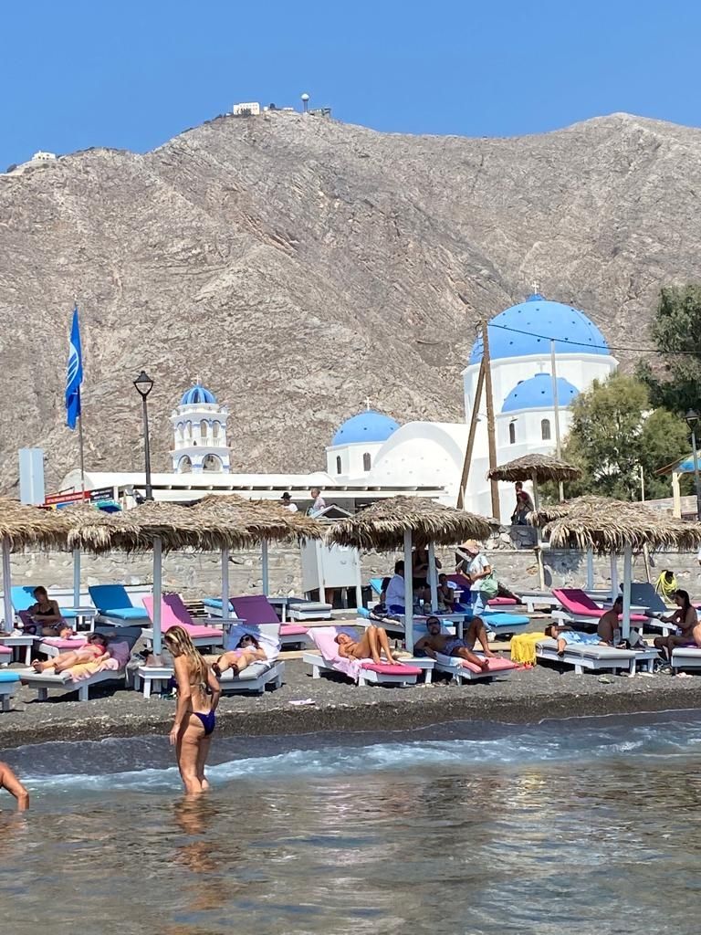 Este fue el último día en Santorini, dicen, uno de los lugares más paradisíacos del planeta. No me pareció tanto. Ni a mí ni a Natalia, mi esposa, con la que seguimos este peregrinar europeo. Aunque muchas cosas nos asombren, sus callecitas cautiven y sus playas nos provoquen múltiples comentarios, desde la necesidad de andar calzados en el agua hasta la piedra volcánica que está por todas partes o el agua transparente.