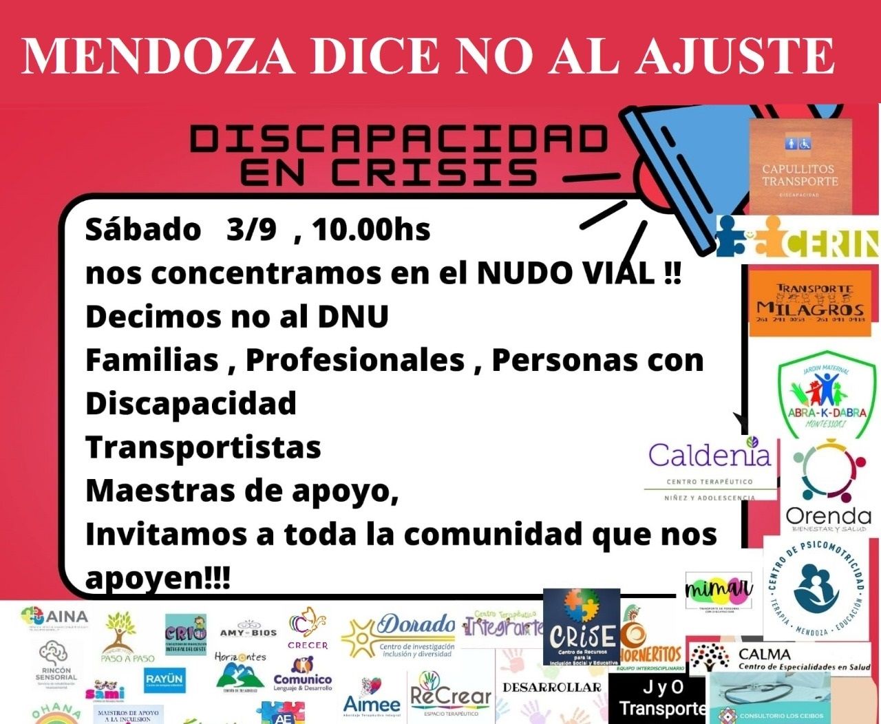 Una nueva jornada de protestas y pedidos que resuenan en defensa de las personas con discapacidad y sus familias, junto a miles de profesionales y trabajadores que prestan servicios a este vulnerable sector de la población, se hizo sentir en todos los rincones del país. El líneas generales, la lista de motivos que impulsan el alto nivel de malestar es extensa; son miles quienes solicitan que la respuesta por parte del Estado Nacional y las provincias llegue de manera expeditiva, con resoluciones concretas y rechazan de plano el recorte de fondos para el sector; una situación que recientemente fue negada por las autoridades nacionales.