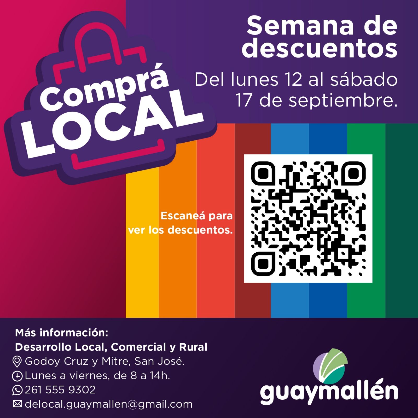 Con el fin de fomentar y difundir el desarrollo económico de los comerciantes en Guaymallén, la municipalidad realiza la primera edición de la propuesta “Semana de descuentos en Comprá local”, en la que más de 40 negocios y emprendimientos de distintos rubros del departamento ofrecen importantes promociones.