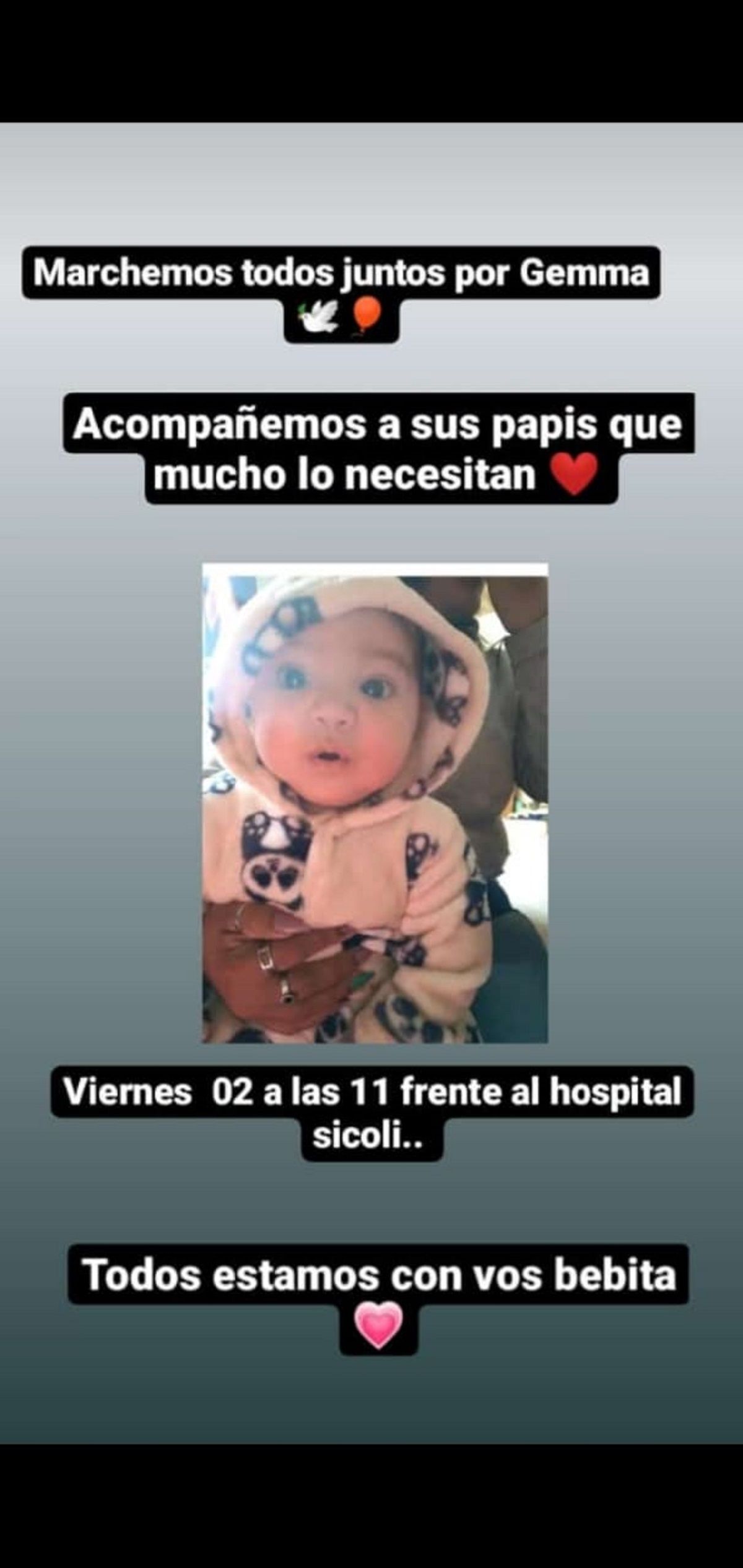 "Pedimos que las autoridades y a la Justicia comprendan que no puede haber otra Gemma que muera por la atención deficiente, la falta de información y el no respeto a los protocolos indicados para casos tan sensibles", expresa Rosario, quien por estos minutos encabeza la marcha con el cartel en el que muestra la foto de su beba.