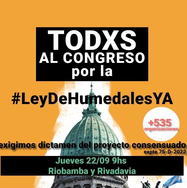 La organización sin fines de lucro Eco House convocó a través de sus redes sociales y escribió: "Sin ecosistemas sanos no hay producción ni vida posible. El Congreso Nacional debe estar a la altura de las circunstancias de la crisis ecológica y climática, y que reconozca el trabajo colectivo y el reclamo ciudadano de más de una década detrás de la Ley de Humedales".