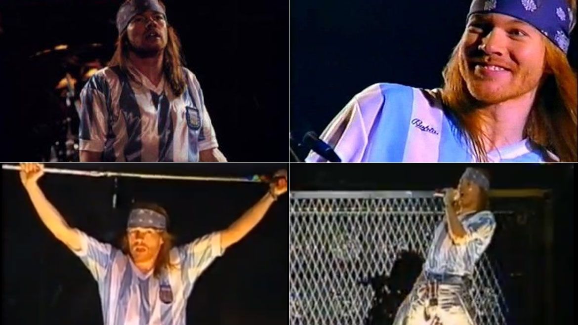 Justo cuando me enganché con su música, en el canal MUSIC 21 pasaban seguido un concierto en vivo de 1988 y ahí me volví loco viendo a la banda en vivo: con un Slash en cueros y unos rulos que tapaban sus ojos y siempre con un puchito prendido. El sacado de Steven Adler dándole como loco a la batería, con la onda de Izzy en guitarra y de Duff en bajo. Pero el que me hipnotizó como una serpiente de cascabel fue Axl: tenía un odio y una pasión en la manera de cantar que nunca había visto en mi vida. Le exigía al máximo a su garganta hasta llegar a niveles irrepetibles y bailaba como una serpiente de cascabel, dicho sea de paso.