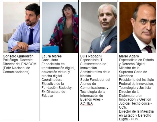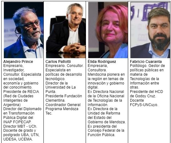 Once son los integrantes de este equipo de mujeres y hombres que se desempeñan en instituciones destacadas como la Fundación Sadosky, la Red de Ciudades Inteligentes de Argentina, el Ente Nacional de Comunicaciones (ENACOM), la Cámara de Informática y Comunicaciones de la República Argentina, el Polo TIC Mendoza, el Programa Mendoza Tecnológica, la Subsecretaría de Innovación Administrativa de la Nación, la Cámara Argentina de Comercio y Servicios, y el Instituto Federal de Innovación, Tecnología y Justicia.