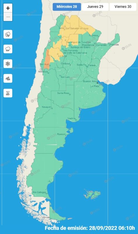 El Servicio Meteorológico Nacional en su Sistema de Alertas Meteorológicas Tempranas (SAT) advierte sobre la ocurrencia de importantes lluvias en La Rioja y San Juan. Esto llevó a que el organismo lanzara un alerta naranja.