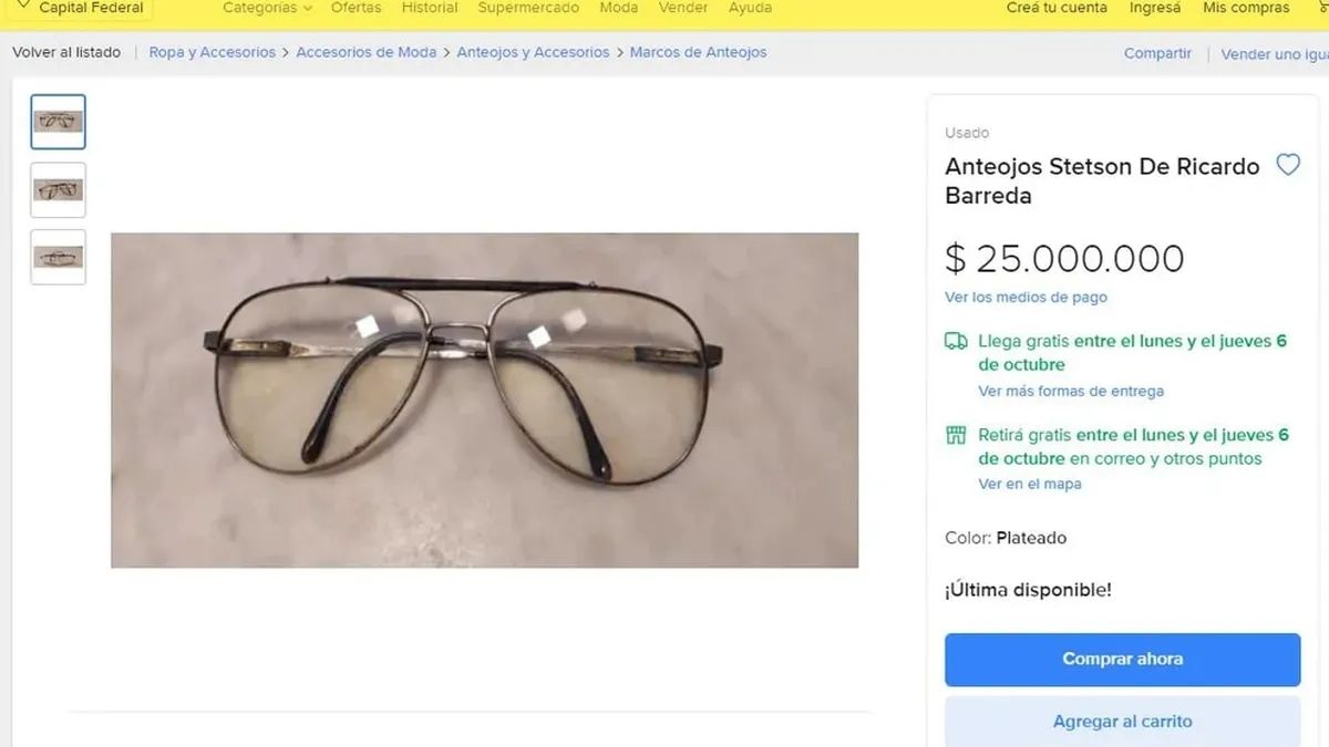 En la publicación se observa un precio exorbitante que alcanza los 25 millones de pesos y los describe como "anteojos pertenecientes al odontólogo Ricardo Barreda. Producto raro e histórico para coleccionistas".