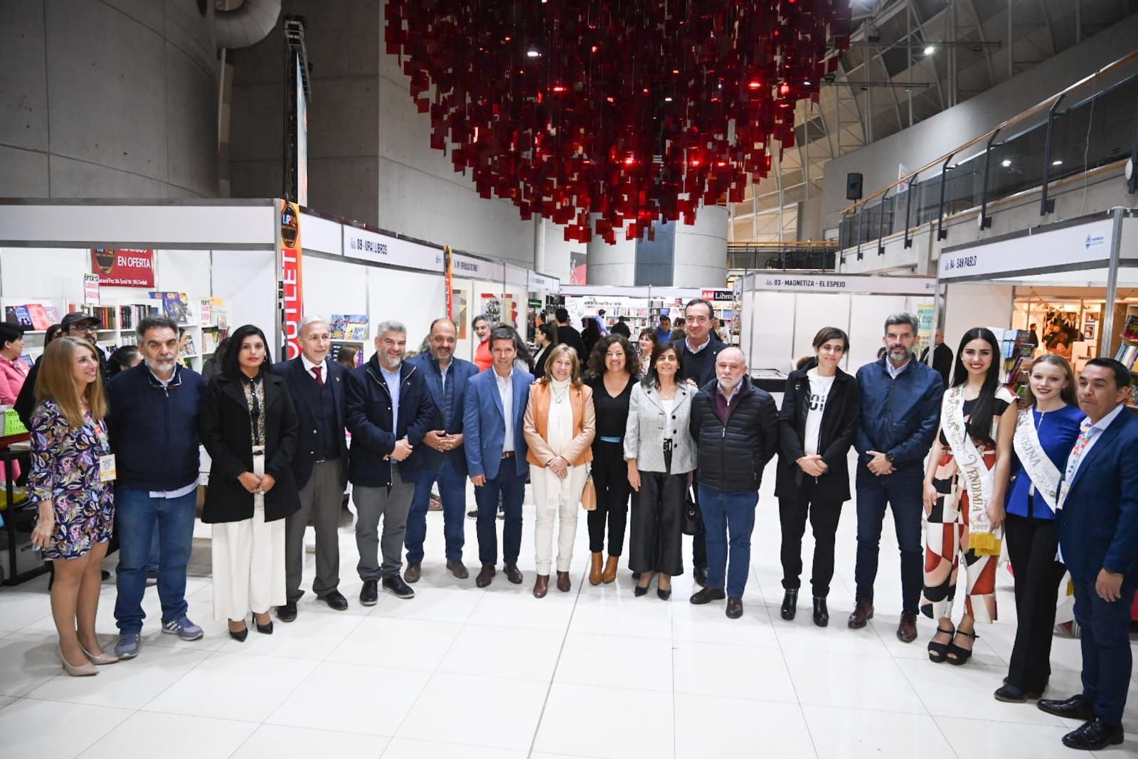 Durante la tarde de este viernes, se realizó el acto oficial de apertura, del que participaron la ministra de Cultura y Turismo, Nora Vicario; el presidente de la Cámara de Diputados de Mendoza, Andrés Lombardi; la rectora y vicerrector de la UNCuyo, Ester Sánchez y Gabriel Fidel; el rector de la Universidad Maza, Daniel Miranda; el intendente de Capital, Ulpiano Suarez; la senadora nacional, Mariana Juri, el Cónsul General de Chile, David Quiroga Hinojosa; el director de Estrategias Culturales, Fabián Sama; miembros del cuerpo Consular de Mendoza; directores de Cultura de distintos departamentos; la artista visual y narradora, Graciela Scarlatto; la reina y virreina de la Vendimia, Natasha Sánchez y Giuliana Pilot; escritores y público en general.
