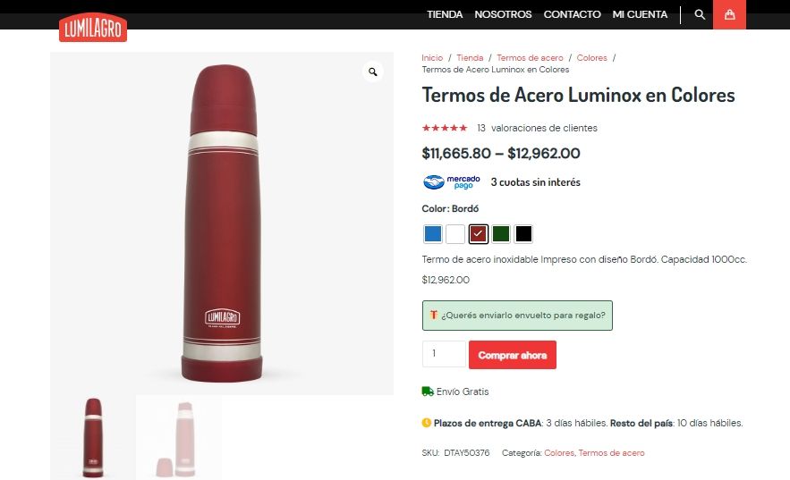 Si hacemos la comparación, un termo de acero de marca Lumilagro de 1.000 cc vale entre $11.600 y $13.000; mientras que un termo Stanley de 800 cc vale entre $23.400 y $24.000. Asimismo, en Mercado Libre se encuentra el mismo termo de industria extranjera en un rango mayor, desde $17.000 hasta a los $27.000.