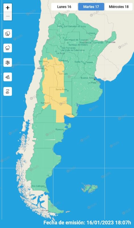 El Servicio Meteorológico Nacional (SMN) indica que este martes se registrará poco cambio de la temperatura y vientos moderados del noreste. El sistema nacional emitió alerta amarilla por tormentas que pueden provocar riesgos o interrupción momentánea de actividades en Mendoza.