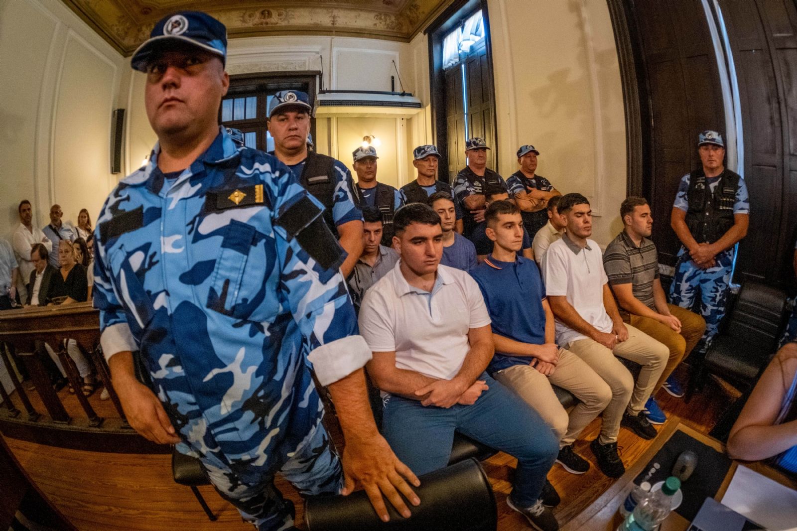 Los ocho imputados -Máximo Thomsen (23), Enzo Comelli (22), Matías Benicelli (23), Blas Cinalli (21), Ayrton Viollaz (23), y Luciano, Ciro (22) y Lucas Pertossi (23)- también estarán presentes, al igual que desde la apertura del debate oral.