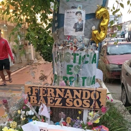 "Justicia por Fernando" es una consigna que fue cobrando cada vez más fuerza a medida que transcurrieron las audiencias en Dolores, que hoy está cubierta de carteles, banderas, pasacalles, fotografías y flores en homenaje a Fernando.
