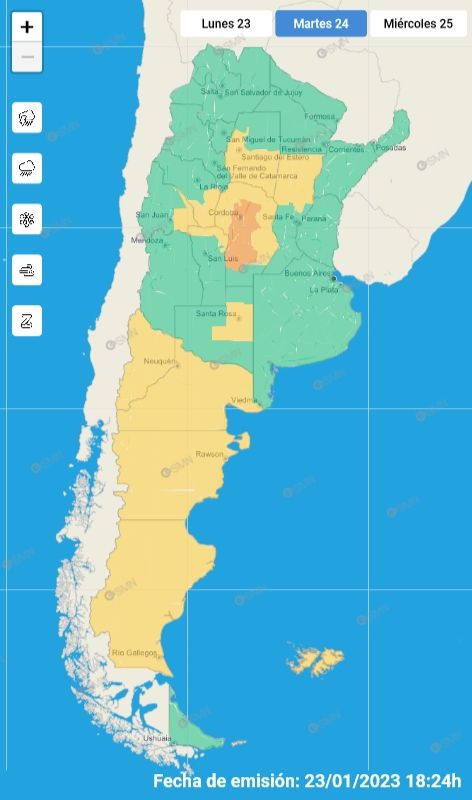 En el caso de la cordillera de los Andes las condiciones meteorológicas serán estables durante toda la jornada y no hay alerta vigente para esa zona.