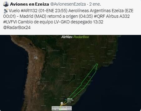 Lo primeros en replicar fueron los rastreadores de radares que, muchas veces por distracción y en busca de peculiaridades, siguen el recorrido de los aviones que despegan y aterrizan en el Aeropuerto Internacional de Ezeiza. Esta vez un recorrido elíptico había llamado su atención: el vuelo #AR1132 de Aerolíneas Argentinas que volaba de Ezeiza a Madrid debió regresar a origen.
