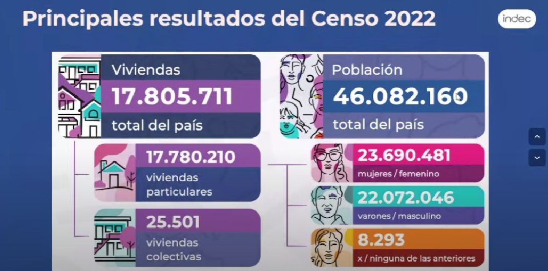 Más de la tercera parte de la población del país está concentrada en la provincia de Buenos Aires donde viven 17.569.053 personas de las 46.044.703 que habitan el país. La población argentina creció un 15% con respecto a los datos del último censo, cuando vivían en el país 40.117.096 personas.