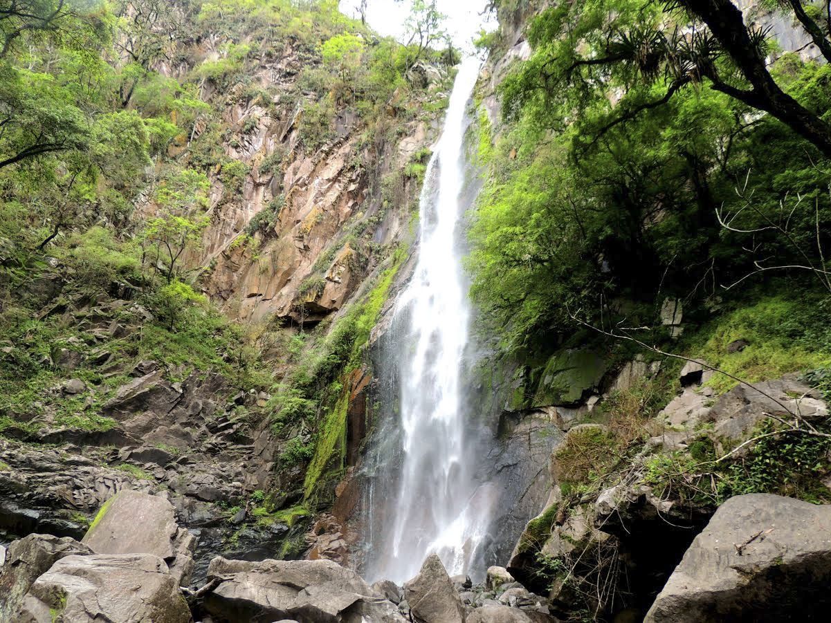 Al fondo de la caída el agua forma un piletón de casi 50 metros de diámetro, verde y transparente, donde los visitantes se pueden bañarse bajo la cortina fresca que viene de las vertientes de las cumbres del cerro Quico.