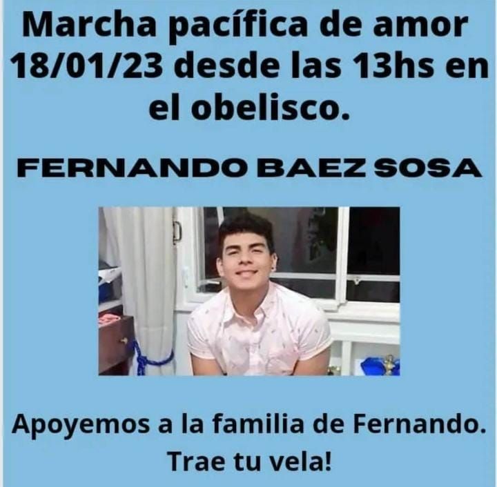 Personas de todo el país autoconvocadas y reunidas en el grupo de Facebook "Justicia por Fernando Báez Sosa" llamaron a realizar una marcha pacífica el miércoles 18 de enero, a las 13, al cumplirse tres años del asesinato del joven.