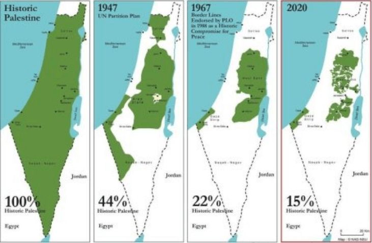 "En mi lectura, fracasaron estos acuerdos por la cobardía de Arafat y la testarudez de los Israelitas, que no quería soltar ciertas cosas", dice la autora y agrega: "De ahí, solo han empeorado las posiciones. Israel ha lanzado un plan de 'colonización' de Palestina. Es una forma de carcomer, lentamente, los territorios palestinos que quedan". Habiendo investigado la relación entre Israel y Palestina, la autora se atreve a mostrar la evolución de esta colonización con un mapa del Ministerio de Relaciones Exteriores de Francia.