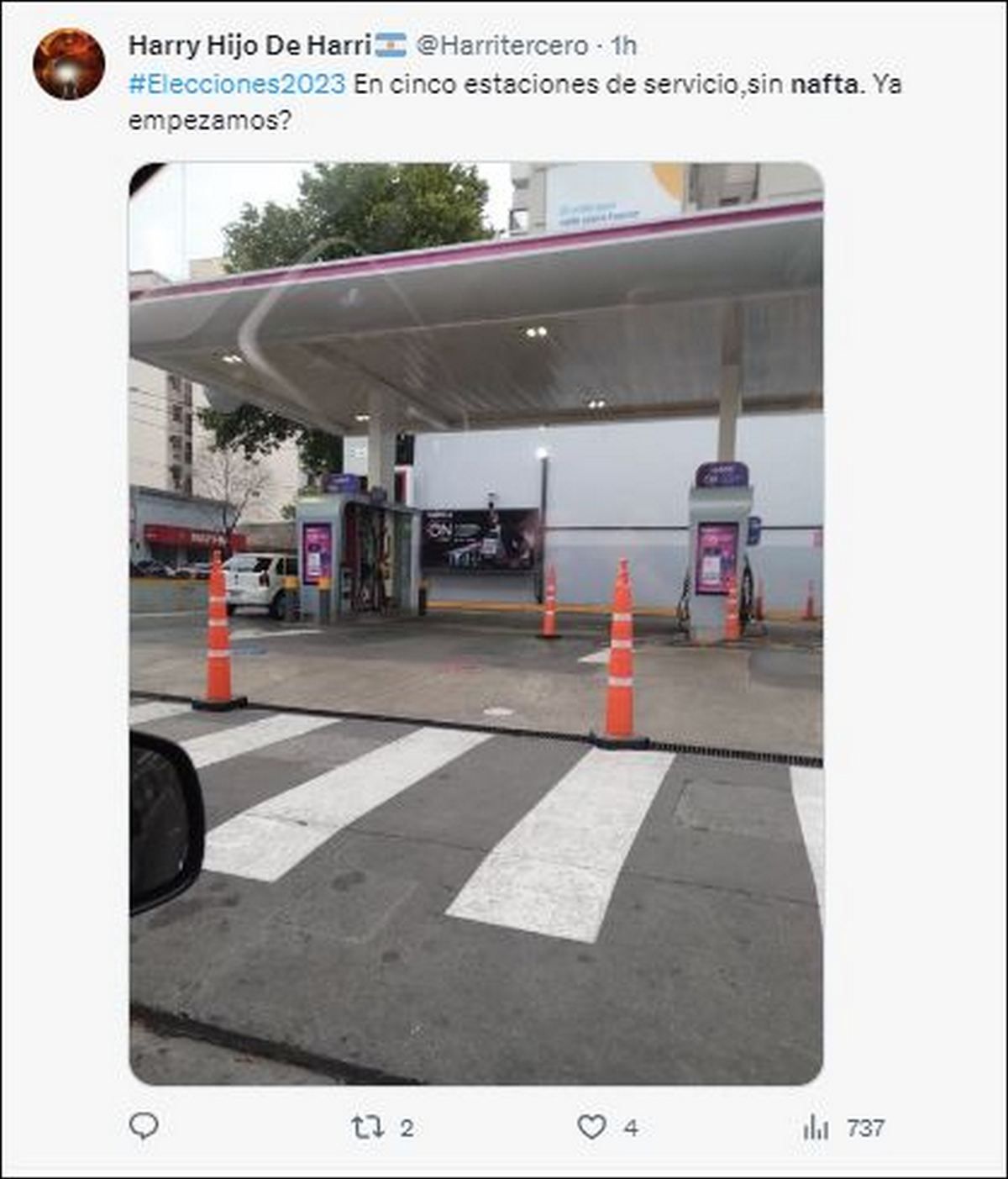 En las redes sociales se evidenciaba ya que algunas estaciones de servicio ya no cargaban naftas. Estos son algunos mensajes en la red social "X" (ex Twitter).