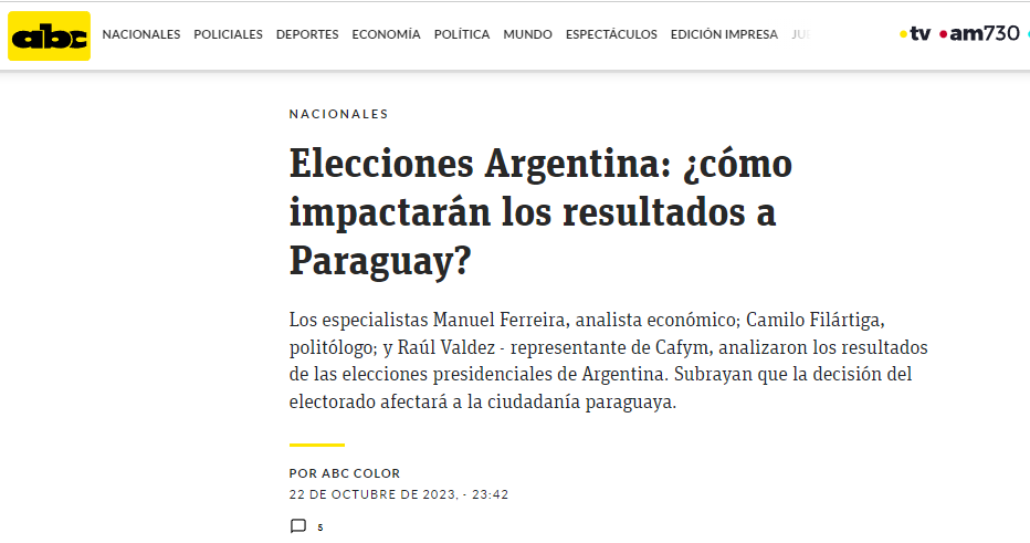 Y en la misma línea editorializaron la noticia distintos medios del mundo. A pesar de que el conflicto en Gaza, entre Israel y Palestina, acapara la atención de los medios, los principales diarios y portales reservaron un lugar al resultado de las elecciones en Argentina. Especialmente los latinoamericanos: no sólo por cuestiones geográficas -son vecinos de Argentina y están a miles de kilómetros del conflicto bélico que preocupa al mundo- sino también por el modo en que las decisiones políticas argentinas pueden afectar al devenir de los ciudadanos en cada una de esas naciones.