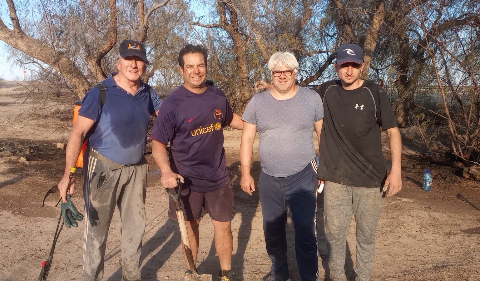 Alejandra y su hijo trabajan sin cesar. Llega un camión que vacía el agua que trae en tanques más chicos. De ahí a los baldes y de los baldes a los árboles quemados. Un trabajo de hormiga. “Fue espantoso. No dormimos nada porque el fuego estaba cerca. Nos organizamos con los vecinos, con palas, baldes y picos. Podías perder todo. Por suerte no pasó”, explicaba la mujer.