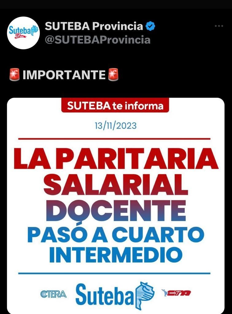 Agregando: “Es por ello que la propuesta expresada por el Gobierno provincial aún no contempla lo expresado por el Frente de Unidad Docente bonaerense y es necesario seguir trabajando en el ámbito paritario.”