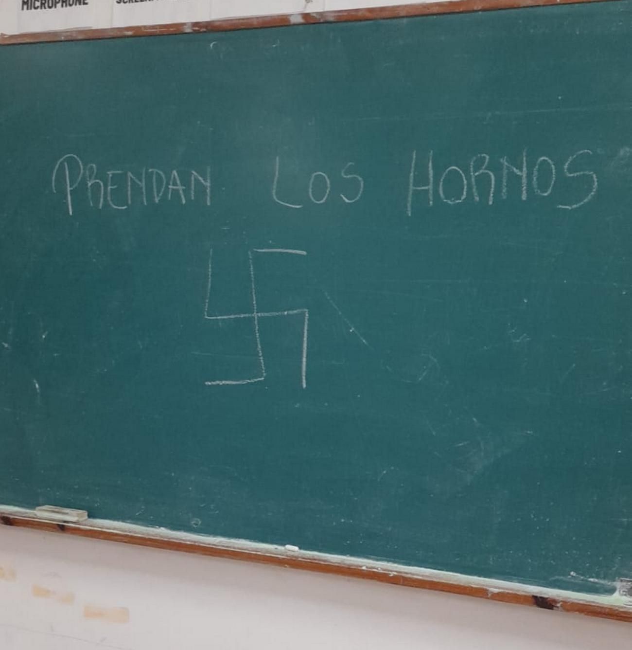 La autoridad de mesa reaccionó rápidamente borrando lo escrito en una tiza con el dibujo de una esvástica con un mensaje nazi.
