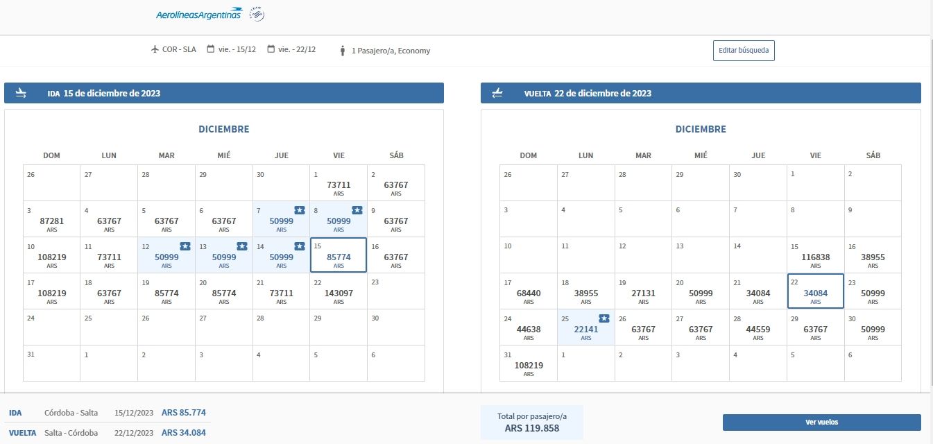 Si bien se creería que viajar en avión es más costoso que en colectivo, esta no es siempre la realidad. Por ejemplo, un viaje redondo de Córdoba a Salta en autobús puede tener un costo aproximado de $100.000. Sin embargo, un vuelo para el mismo trayecto podría alcanzar los $120.000. No obstante, es posible encontrar precios más accesibles para los vuelos si se opta por viajar en días menos populares, como los martes, miércoles y jueves, donde la demanda es generalmente menor.