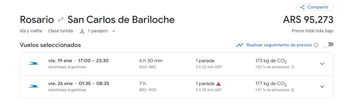 Los vuelos también son más baratos, aunque no sean directos. Este es el caso de la ruta de Rosario a Bariloche, un vuelo de ida y vuelta puede tener un costo de aproximadamente $95.000 y una duración promedio de 6 horas, incluyendo una escala. Por otro lado, el viaje en colectivo presenta una dinámica diferente.