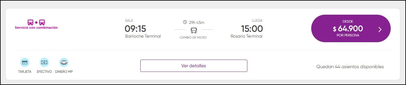 El precio del boleto de ida es de $67.000 y el de vuelta es de $64.900. Este viaje es considerablemente más largo, con una duración cercana a las 30 horas, e incluye una escala al llegar a Neuquén. Esta comparación ilustra no solo la diferencia de precios entre ambos medios de transporte, sino también la significativa variación en el tiempo de viaje y la comodidad del trayecto.