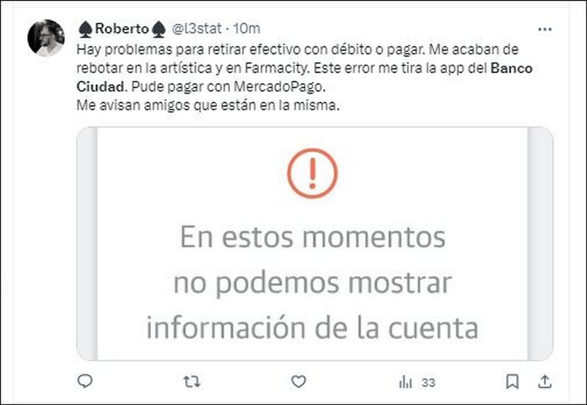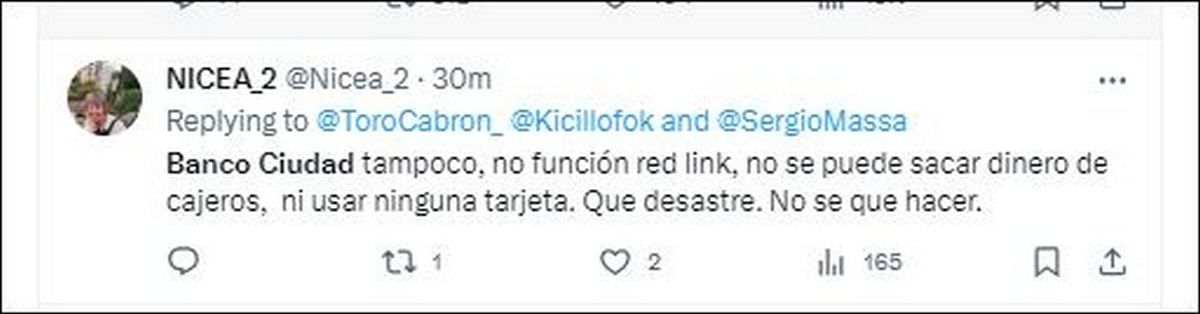 Sin embargo, la teoría que circula en la red social "X" es que se cayó el sistema "Prisma" que regentea a todas las emisoras de tarjetas con lo cual el problema no se suscitó pero sí afecta a las entidades bancarias de la Red Link.